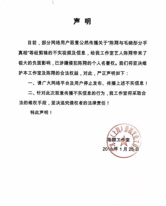 自两人分手后,毛晓彤因照旧正常工作而被陈翔的粉丝认为不尊重这段感情,遭受了相当多的网络暴力与攻击,就连她的家人也没有幸免,毛晓彤的母亲还因此接到了不少骚扰电话和短信,为了保护自己的家人,毛晓彤此次选择了站出来面对。