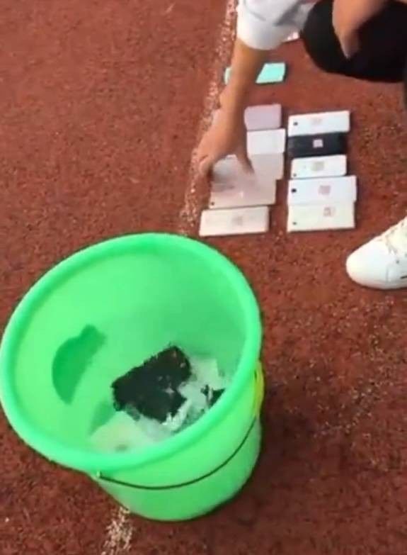 于是乎,几十部从学生十指间没收来的手机(目测里面不乏数千元一台的智能手机)被扔进水桶,用锤子砸烂。对此,学校工作人员称,他们也是没有办法,一切为了学生好。不过,明话要问:为了你好,就一定要砸烂你的手机么?
