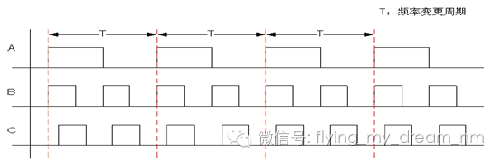 频率同步指两个信号的变化频率相同或者保持固定的比例。信号的相位可以不一致,频率也可以不一致。如图所示,信号A、B和C是频率同步。频率同步中,时钟信号是按周期变化的信号,该信号不包含时间信息。