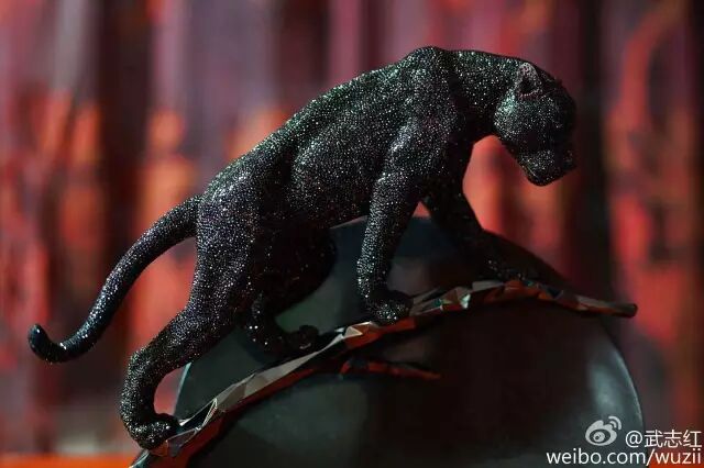 [配图是我拍的。有了这个黑豹意象后,后来一次看淘宝,看到施华洛世奇有一个黑色美洲狮的限量版摆件,它黑色的体表,加暗红色的肌理,让我惊叹,天啊,这就是我看到的那个意象啊。黑色的体表,象征着黑色生命力,而暗红色的肌理,如同生命力像熔岩一样在涌动。