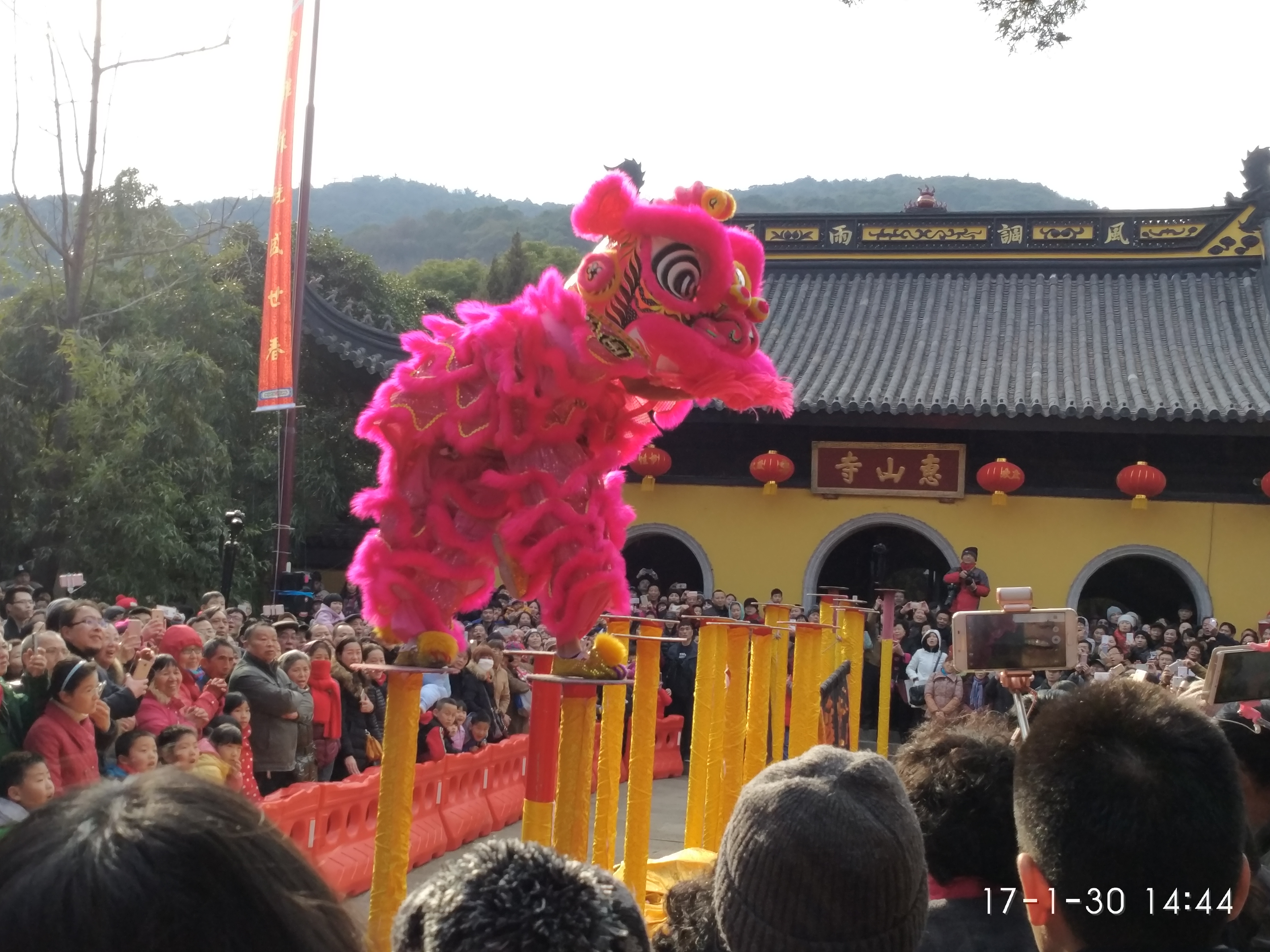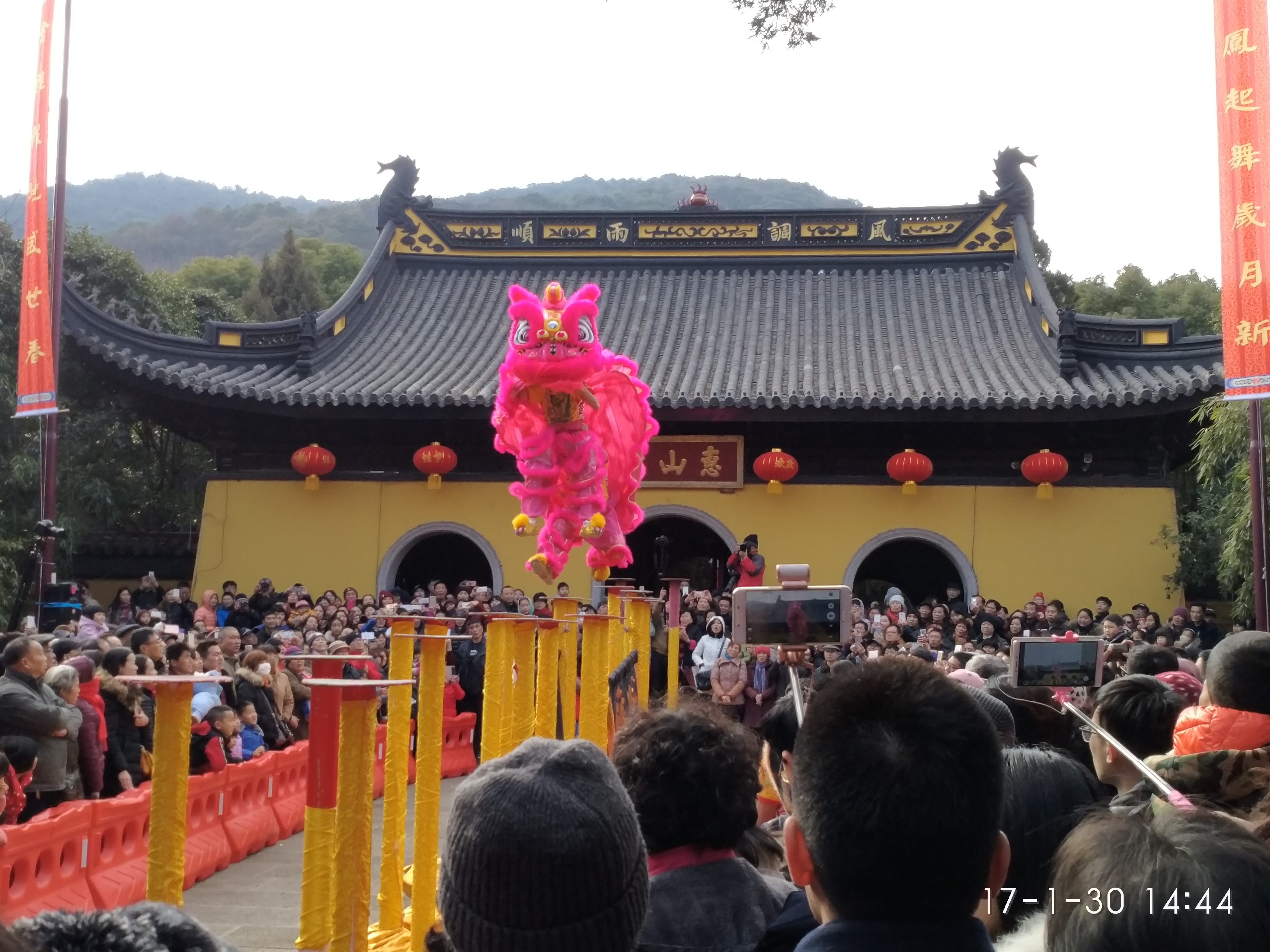 街道尽头就是惠山寺和寄畅园了,也就是说,古镇结束,景区开始。寺前正在进行舞狮表演,真的是人山人海。腾空的一瞬间。