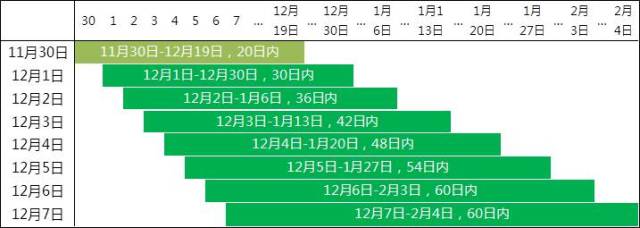 12月6日,可购买60日内的车票,较前一日范围又增加6天