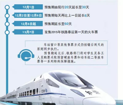 ③从12月21日起,学生可以通过互联网、电话、窗口、自动售票机等各个渠道购买2015年3月15日之前的学生票。
