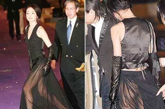 第25届香港电影金像奖颁奖典礼红毯上,周迅身着黑色透视礼服现身,而她的美臀也在透视装下若隐若现。