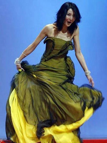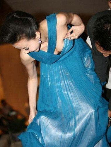 张曼玉在戛纳影展上因裙摆太长的缘故,在下楼时差点摔倒,引发她惊呼,花容失色。