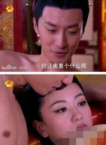 阿娇扮演的上官婉儿也拍床戏了,半露着酥胸,再看看男主那猥琐的形态,真的是激情四射啊。