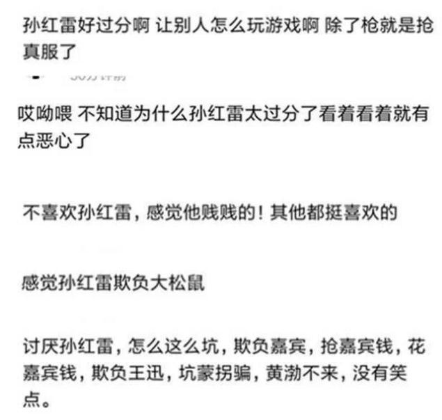 许多人吐槽孙红雷是在是太过分了,就连最后黄磊都黑脸了,特别是他摘掉王迅眼镜的片段,遭到了网友的谩骂,觉得孙红雷这期真的是太过了,每次都是这样,一点新花样都没有。