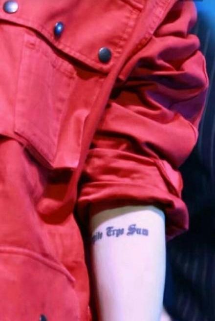 鹿晗,细心的爱豆们估计很早就发现了,这个纹身从去年开始就存在了,这个纹身是拉丁文,大意是:我思故我在。很有符合鹿晗是不是~