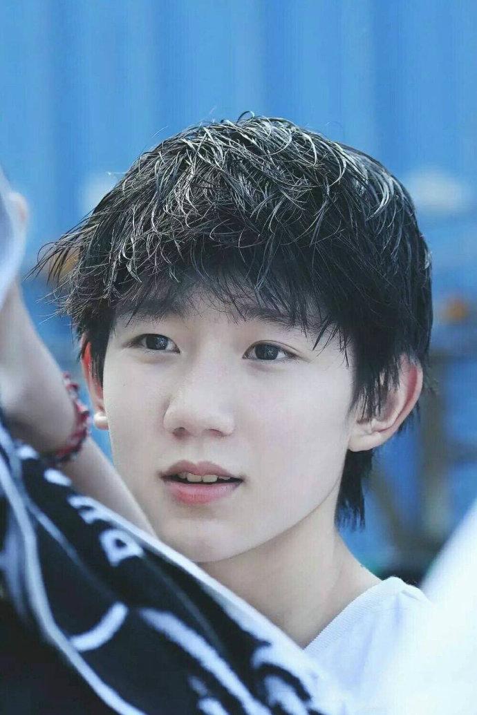 王源的湿发照很可爱,发丝是半湿状态,让头发显得毛茸茸,王源的表情也是一半懵懂一半萌。