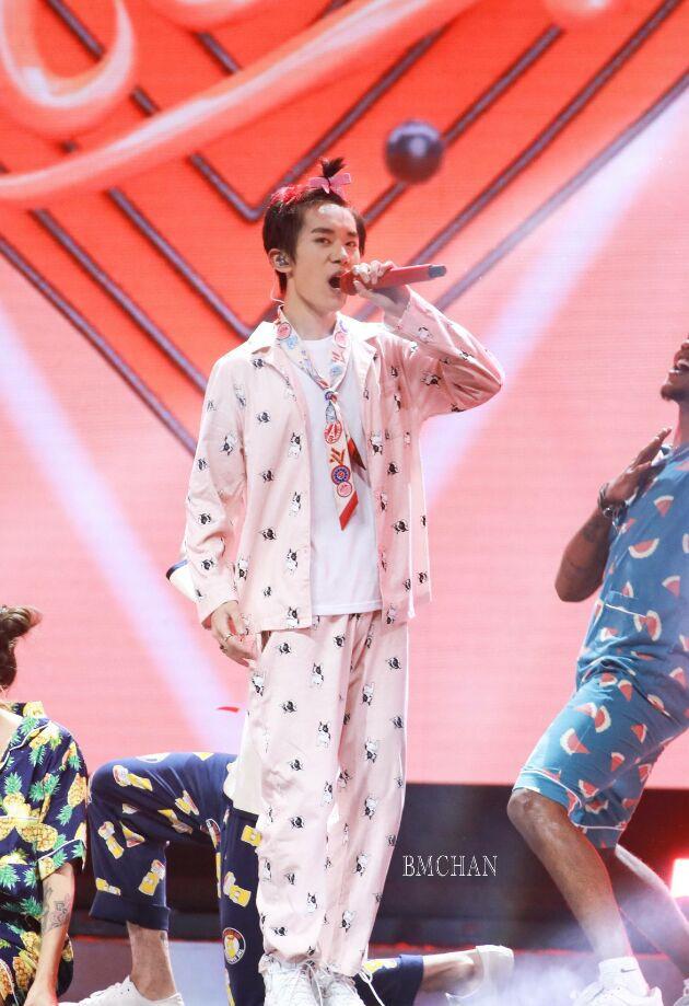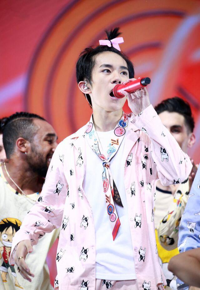 演唱会上一身睡衣装,搭配粉色领带,真是俏皮可爱又不失时尚感。而最大的亮点莫过于他头上的那撮小辫,再就配上一个粉粉的蝴蝶结,少女心炸裂啊!小编不仅感叹一个男生怎么可以这么时尚可爱,也只有易烊千玺了!