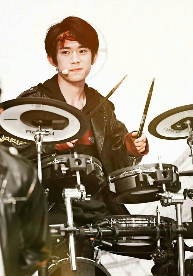 近日,易烊千玺在《快乐大本营》大秀架子鼓,帅气的他穿着黑色皮衣,打架子鼓的时候十分有范。