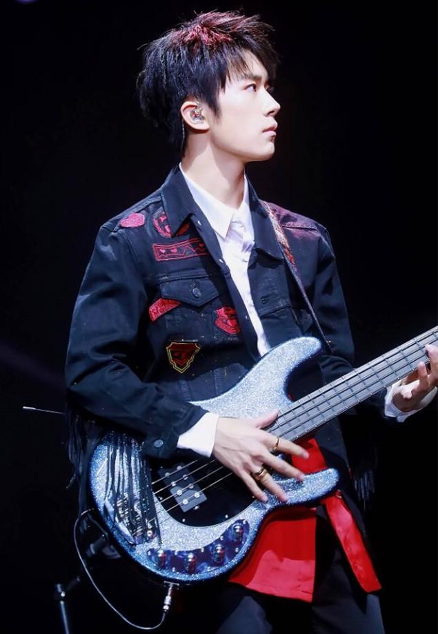 这次千玺解锁新技能,在演唱会上大秀b-box,一段超炫酷的表演,瞬间点燃全场气氛。紧接着就是一段吉他solo,黑色牛仔搭配手袖的流苏,白色内衬加上红色下摆。弹着电子吉他,嗨翻全场!