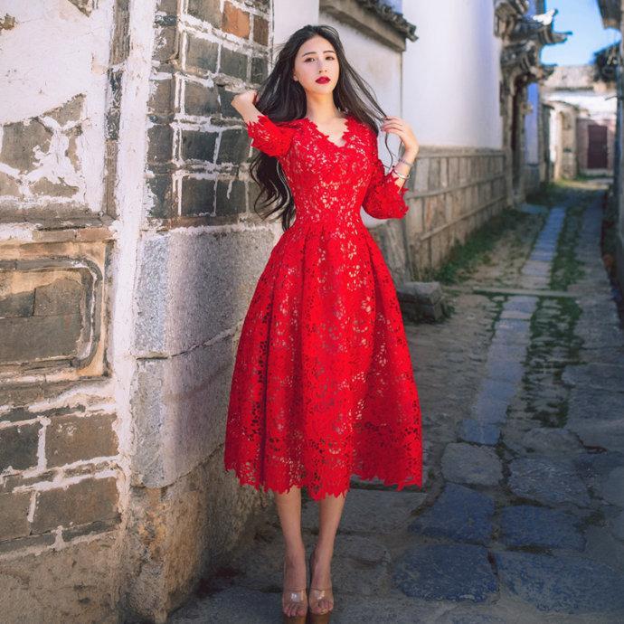 颜色仙仙的裙子,显得皮肤很白,好看,回头率真的是百分百,料子挺软的,不扎人,性价比高,很厚重,但是不会热,蕾丝的面料一看就很重工。