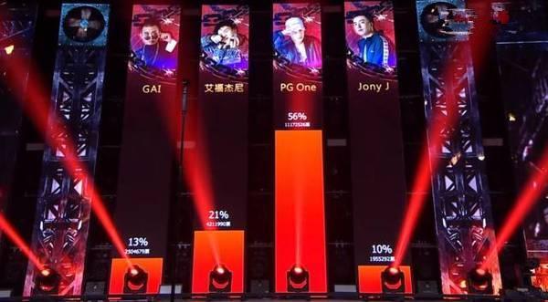 这场直播的结果是在4名选手中淘汰一位,然后网友们投票的方式来决定,最终场外的投票是pg one第一名