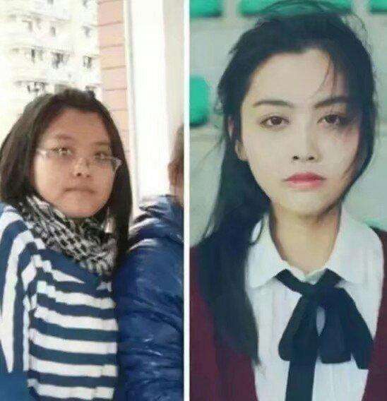 大一时肉嘟嘟的脸蛋,还留着高中最流行的“乖乖女式齐刘海”,穿的是妈妈给选的衣服,同学给拍照时也不好意思看镜头,脸都羞红了。大四时减肥成功,摘了眼镜,还化了精致的妆容,怎么看都像大明星。http://si1.go2yd.com/get-image/0GOgrfKM7lI