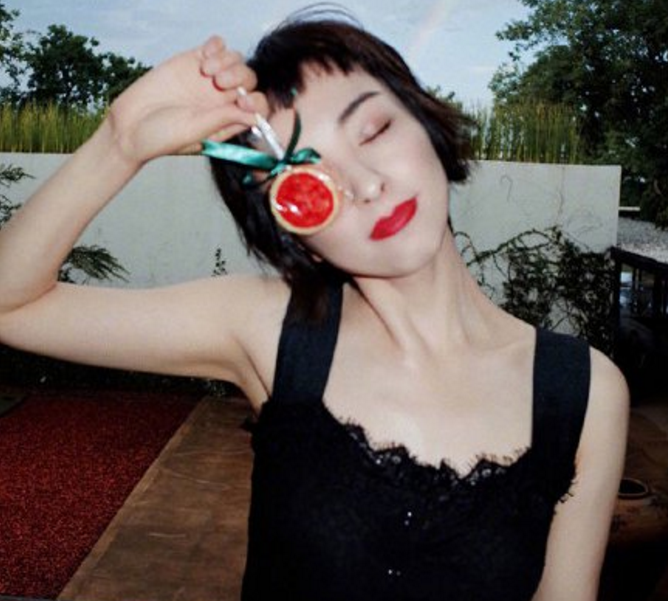 身穿带点民族风味的一字肩半身裙再配上小姐姐的短发,堪称完美结合,既提升了气质也起到了减龄的作用。