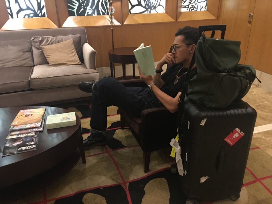 与众不同的打开方式,胡歌在酒店大堂安静地看书,十分放松随性呢!
