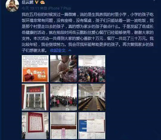 小岳岳曾发微博感叹“回不去的故乡”,给家乡小学筹备30万建爱心餐厅,让孩子们有条件吃上健康营养的食物。