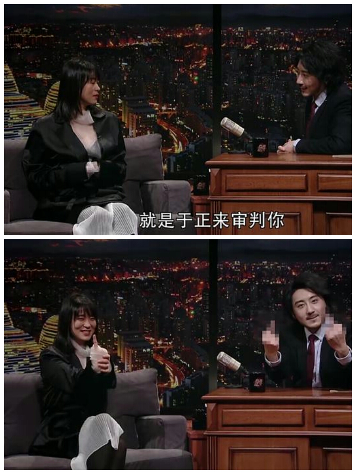 近日黄璐参加了一档节目,又被问到了演员的诞生,主持人问到,评委于正DISS她竖中指,对此黄璐说到:自己一辈子都没竖过中指,主持人在现场对于正竖起中指,黄璐坚持以食指代替。