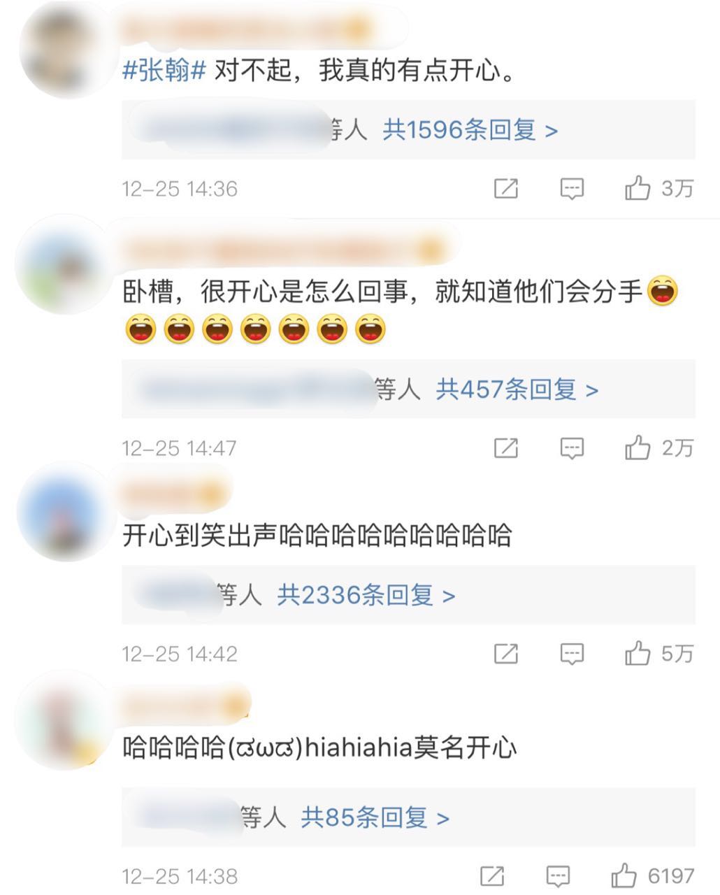 分手本来是一件令人十分遗憾的事情,然而张翰工作室和娜扎工作室底下的评论的画风却是十分诡异,不少人表示都是意料之中的事,更有甚者,竟然表示十分开心,网友们呈现出纷纷叫好的状态。