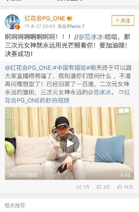马苏还拉上了范冰冰,因为PG One说过他的三次元女神就是范冰冰,于是范冰冰也拍了个视频帮PG One造势,至于这个视频,是马苏追了范冰冰好久,硬拉范冰冰录的,这才跟PG One有了交集。然后PG One就创作了《范冰冰》这首歌,歌词就这样大胆露骨,但也太不尊重范冰冰了。关键是,范冰冰的男友,李小璐的前男友李晨怎么想?