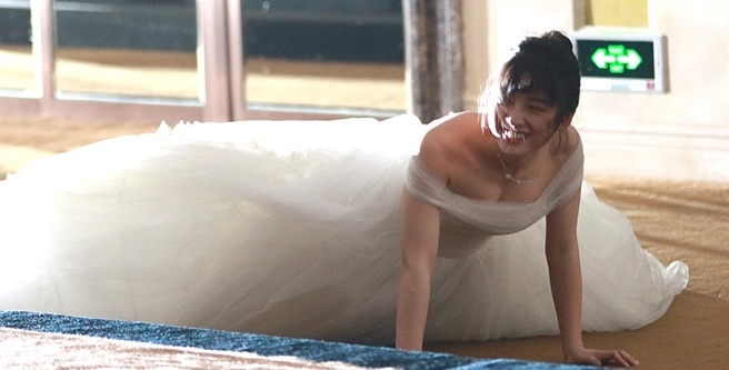 有道是人红是非多,对于此次的选角,也是引起了不小的风波。近日,一组路透照片新鲜出炉,原来是沈月在为新片做准备,在试婚纱。都说穿婚纱是女人一生中最美的时刻,但是在沈月身上却有点不同。沈月是属于有点婴儿肥的女孩儿,虽说软乎乎的很可爱,但是穿礼服难免会暴露出她胖的缺点。穿上一字领婚纱的她,毫无仙气,只能让人感觉到是膀大腰圆。
