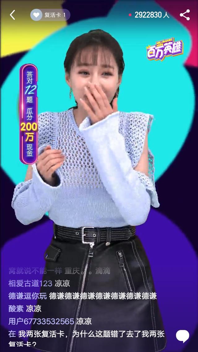 现在的综艺节目真的是内容越来越丰富了,可谓是花样百出,让人看的眼花缭乱。近日,一档名叫《百万英雄》的答题类节目出现在了大众视野,直播答题,答对的人现场瓜分奖金。这样的节目也是富有新意,吸引了不少人围观。也有明星的参与《百万英雄》的直播,看看谁的表现最佳?