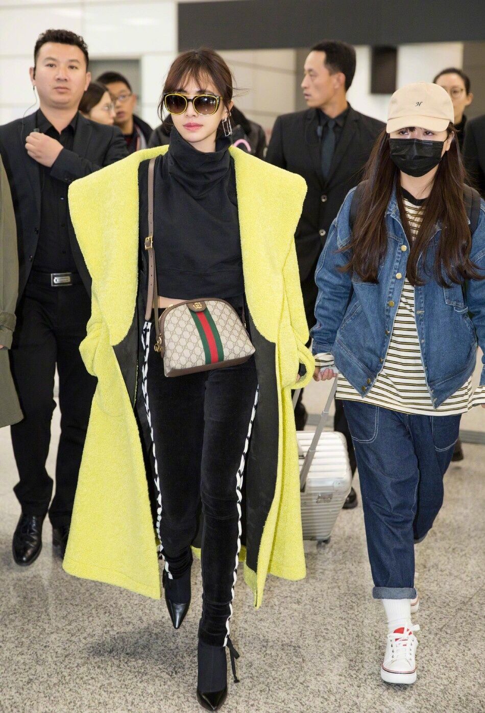 蔡依林用黄色大衣配上黑色露脐上衣,可以说气场十分强大,再加上Gucci包的点缀,让其性感中透着一丝丝霸气,对于还没有进入夏天的朋友来说,这身搭配可以借鉴借鉴。