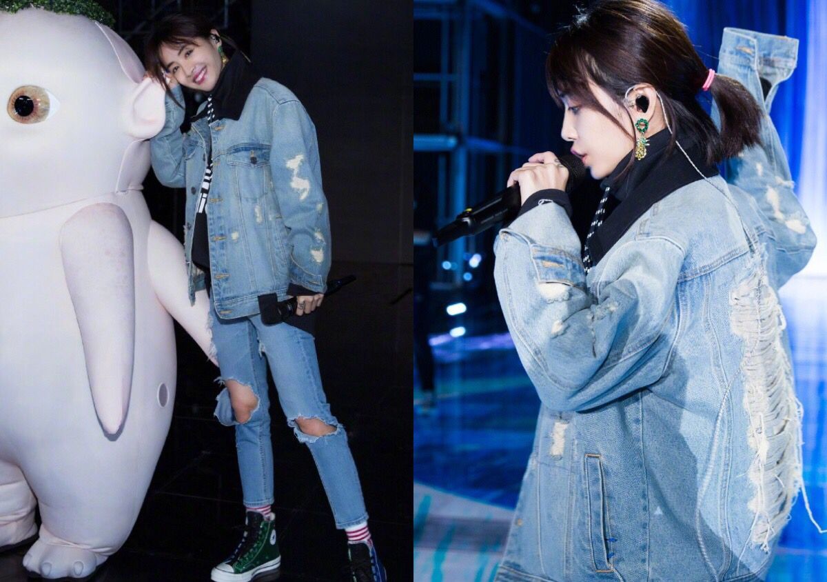 http://si1.go2yd.com/get-image/0LcRbx1mAqG个性十足的破洞牛仔衣和破洞牛仔裤的完美搭配,再加上高邦板鞋,减龄又凸显青春活力,完全让人看不出蔡依林的真实年龄,活脱脱一个二十出头的姑娘。