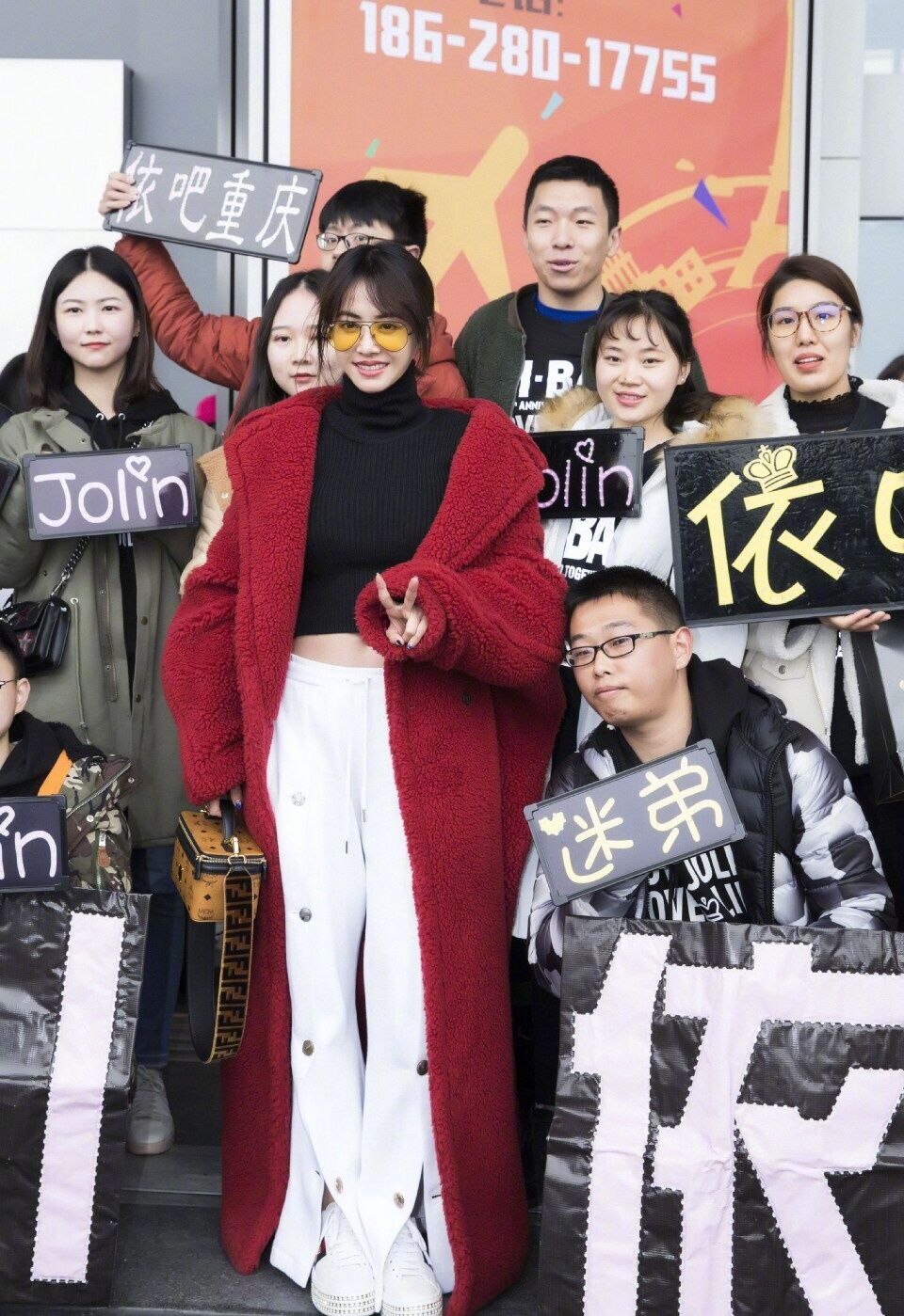 可能蔡依林偏爱大衣搭配露脐装,和粉丝们合照穿的这身也是采用这个搭配方法,露脐装显瘦,大衣显气场,而阔腿裤自然能拉长腿部比例,十分显高。