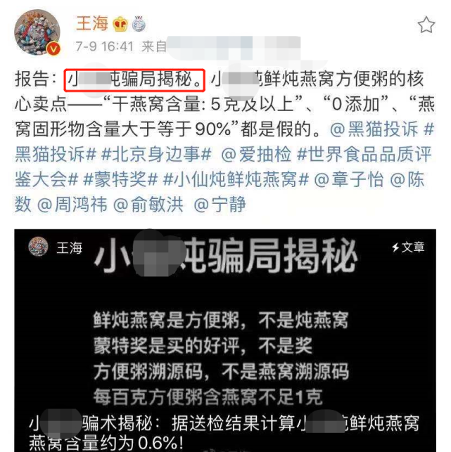 不久前,辛巴直播间出售假燕窝的事情传得沸沸扬扬。因为一瓶燕窝,辛巴以及他的公司被司法调查,而且还可能将会面临15年的监禁。而近日又有一个燕窝品牌被曝是假货,而且经过检测,该燕窝品牌其实就是方便粥,里面的燕窝含量几乎是没有,而该品牌的代言人是章子怡和陈数,并且两人还是该公司的股东,而章子怡在自己怀二胎的时候还亲自食用这种燕窝来达到为其做推广的效果,而这是这样的一个燕窝品牌,更是有很多明星在为它宣传推广。