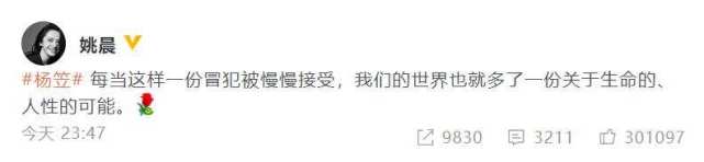 姚晨在个人社交平台发文力挺杨笠,苏醒也在自己的个人小号发文,说力挺杨笠,并没有觉得杨笠的行为有冒犯到男性。而不少网友对于杨笠被举报这件事也有很多看法,不过不少人觉得杨笠说的没毛病。作为一个脱口秀演员,就应该表达观点。说一个段子就被举报,举报人的精神方面可能有问题。