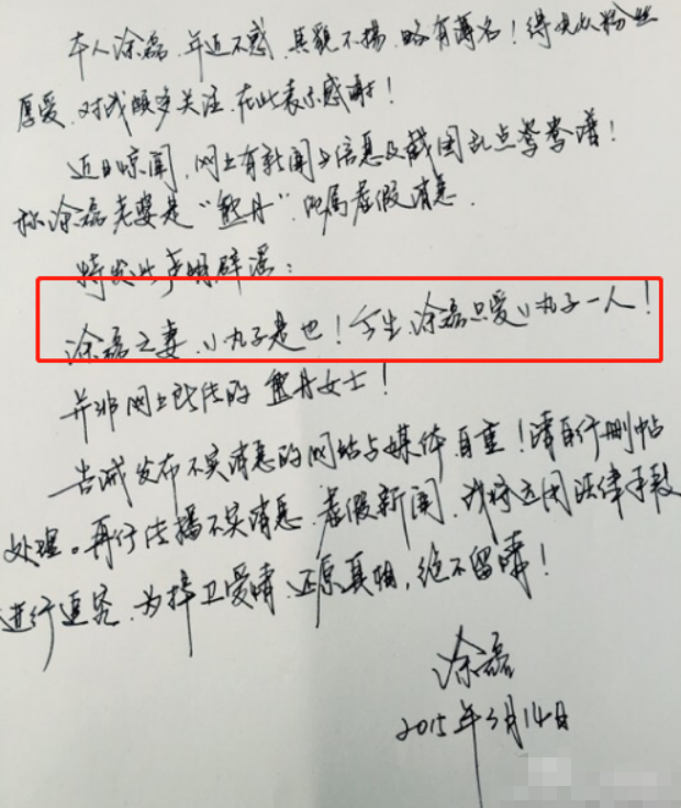涂磊对自己的妻子也是相当宠爱了,还曾经手写过一封信来表白过妻子,信里还写道一生只爱妻子一个人,而且他还曾经在社交平台上分享过自己与妻子的日常生活,不少网友也留言说很羡慕两个人的相处模式。