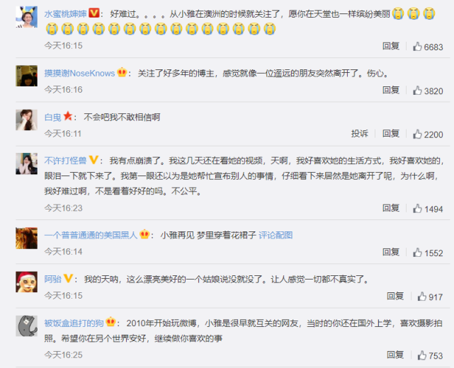 很多网友和粉丝听到她去世的消息后,表示有些震惊,很多人觉得不太真实,也有不少网友表示遗憾,这么漂亮的一个女孩说没就没了。