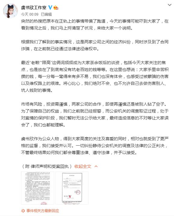 虞书欣粉丝的做法这次之所以引起人的不满,主要是她的母亲之前确实曾被曝出是老赖,虽然之后事情得到了解决并进行了澄清,但她还在限制高消费中。网友本身就有言论自由的权利,该学生也并未对虞书欣进行造谣污蔑等,所以粉丝们的行为让人想起了之前的肖战事件。
