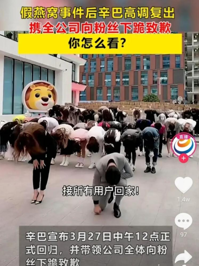 去年辛巴卖假燕窝的事情闹得沸沸扬扬,这件事对辛巴的形象和事业影响很大,辛巴的账号被禁播三个月。辛巴发声道歉,并拿出6000万赔偿给消费者。辛巴能够主动承担责任,应该说他还是有担当的。