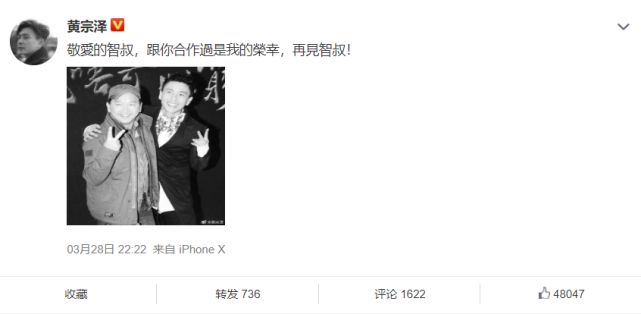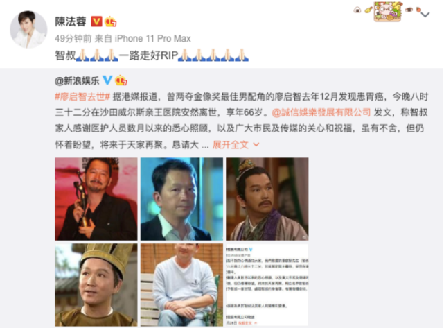 很多明星亲切的称廖启智为智叔。张智尧发文悼念廖启智,配上了4个痛哭的表情,他说希望智叔一路走好。廖启智的离开真的太突然了,他的离世是香港演艺界的一大损失。