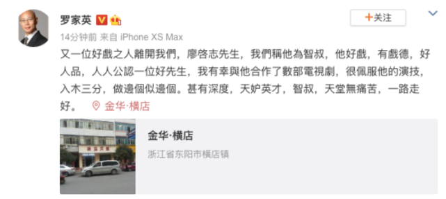 汪明荃的老公罗家英也有发文悼念廖启智,罗家英对廖启智的评价很高,他说廖启智是公认的好先生,有戏德,有人品,可惜天妒英才,希望廖启智一路走好!罗家英的发文让人有共鸣感。罗家英和廖启智也合演过影视剧。