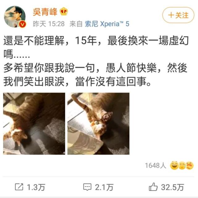 4月1日,歌手吴青峰发布了一条微博感叹他与前经纪人林暐哲的15年师生情谊却以对簿公堂结束,令人唏嘘不已。吴青峰被前经纪人林暐哲起诉并索赔800万案二审胜诉,维持一审原判。而苏打绿也已正式改名 ,这场师徒大战宣告结束。