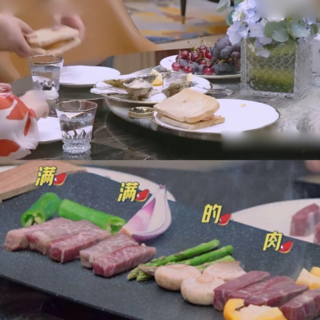 李湘与老公王岳伦曾经参加一档真人秀节目,观众发现餐桌上摆的都是鱼子酱、牛排、高档生蚝等价格昂贵的食材。
