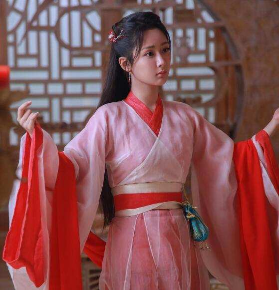 杨超越的五官也是十分精致,而当她穿起汉服来也是超美的,她曾经穿过一身大红色的汉服,裙袂飞扬,再加上散落的头发,不得不说她这样穿看起来太美了。