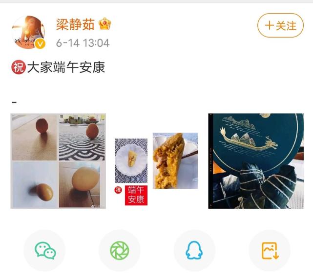 今年端午节梁静茹在微博上祝福大家端午安康,还晒出了粽子和鸡蛋的照片,要知道梁静茹也是会包粽子的哟,去年她就发布了和几个好友在家包粽子的视频,不知道今年梁静茹是否也在家中包了粽子呢?