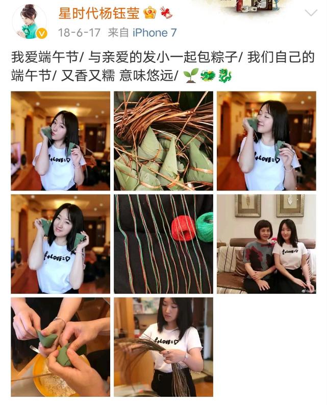 人美歌甜的杨钰莹一直是娱乐圈中不老女神的典型代表,不仅有黄鹂鸟一般委婉动人的嗓音,同时还有一双巧手,包粽子做手工统统不在话下。往年端午节,杨钰莹大方展示自己包粽子水平,还有包粽子的各种准备工作,还和自己的好友一起合照,真的相当接地气了。