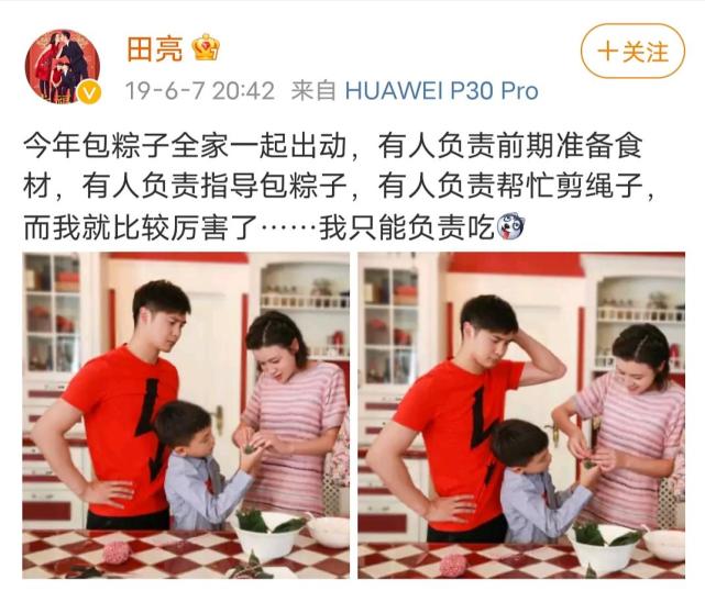前年端午节田亮在微博上晒出一家四口集体出动包粽子的图片,不仅有人负责准备食材,还有人负责包粽子,就连剪绳子也有人帮忙,田亮自己也吐槽了自己一把“只负责吃”。一旁的叶一茜则是手把手的教儿子怎么包粽子,站在另一边的森碟则是认认真真地自己包着粽子,这一家幸福温馨的模样真的羡煞旁人啊。
