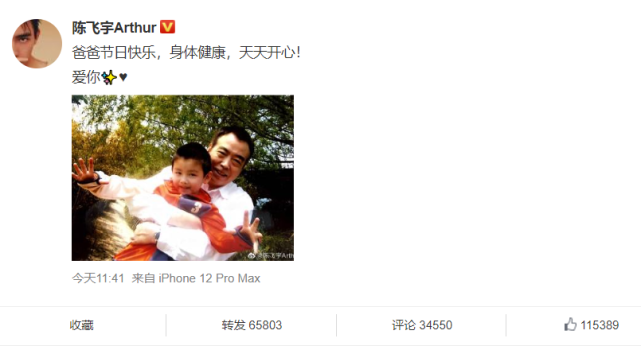 导演陈凯歌的儿子陈飞宇如今也进入娱乐圈发展了,今天父亲节,他晒出了儿时与父亲的合照,光阴似箭,日月如梭,如今陈凯歌已见老态,而陈飞宇看着帅气挺拔,有个大导演老爸不禁让网友期待他日后的发展。