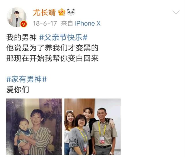 通过《青春有你》出道的尤长靖,在2018年以第九名惊险出道,虽然是马来西亚人但是歌声动听让他收获不少粉丝,当年父亲节他也是发了全家人的合照,感谢父亲这些年的付出。