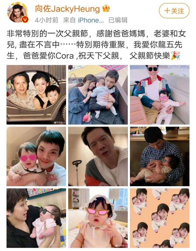 初为人父的向佐今天一早就迫不及待地发微博和大家分享了父亲节的快乐,不仅晒了自己和宝贝女儿的合照还有自己与父亲向华强的视频,去年也是发了自己与父亲的合照,浓浓父子情让人感动。