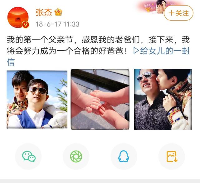 要知道张杰现在可是三个宝贝的父亲啦,今年父亲节他也是祝福所有的父亲节日快乐。在2018年的时候他也晒出了一组照片,晒了两人的亲密合照,感恩父亲的同时也坦言自己以后会努力成为一名合格的好爸爸!