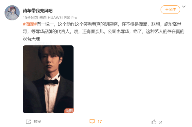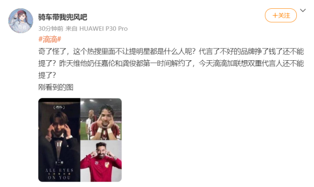 王一博和滴滴的合作的确曾给滴滴带去不少关注度。互联网是有记忆的,王一博这次躺枪不少没有缘由的。王一博所代言的品牌不止一次翻车。去年王一博代言的某品牌指甲油曾被曝致癌物质超标。去年王一博代言的某品牌的零食也曾被曝变质。