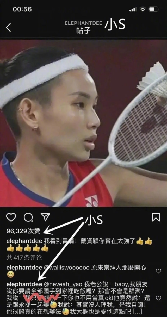 8月2日,中国台北运动员戴资颖获得银牌,小S在ins发文称:“虽败犹荣,但我差点暴毙”,给运动员加油打气,本无可厚非,然而,“差点暴毙”还有之后评论的一句“请她们国手吃饭”,要知道冠军也是一名中国选手,这样的言论彻底把网友们激怒了,当网友开始炮轰小S的时候尽管她拼命删除ins评论,却于事无补。